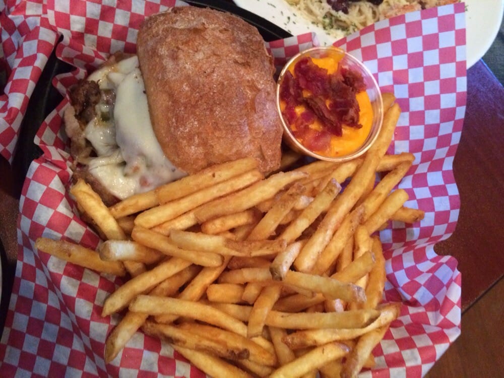 1000's sold every season. Thinly sliced steak sandwich meat loaded in an 8" hoagie roll topped with American cheese, grilled onions and peppers. Served with French fries and a side of brickyard tomato sauce.