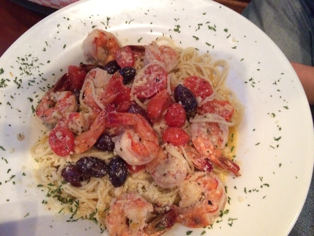 JUMBO shrimp sautéed with garlic butter, lemon and wine. Served over capellini pasta with garlic bread.