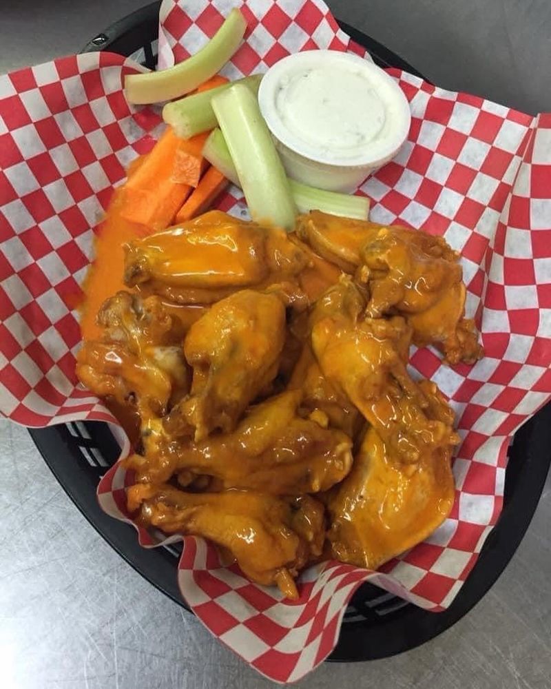 Buffalo garlic parmesan thai chili or honey bbq. served with celery carrots and bleu cheese.